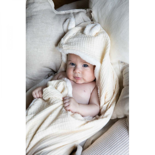 BABYSHOWER - COUVERTURE POLAIRE MANTA TEDDY IVORY POWDER