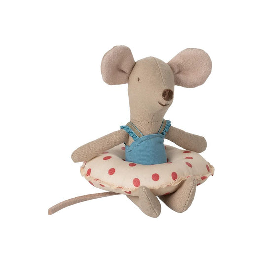 MAILEG - SOURIS A LA PLAGE - SOURIS PETITE SOEUR A POIS ROUGE ET SA BOUEE