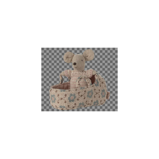MAILEG - BEBE SOURIS DANS SON COUFFIN - ROSE
