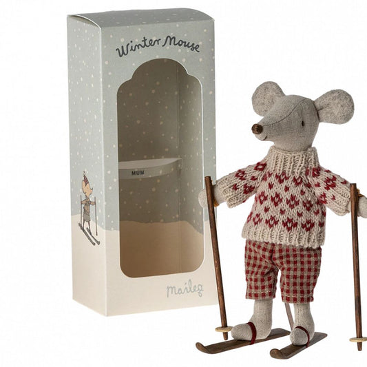 MAILEG - SOURIS EN HIVER SUR SES SKIS, MAMAN
