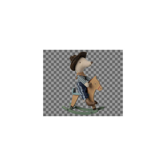MAILEG - SOURIS COW-BOY SUR SON CHEVAL A BASCULE PETIT FRERE