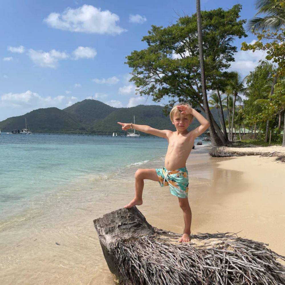 Sa ceinture élastique se resserre par un cordon pour l’ajuster à la taille de l’enfant.