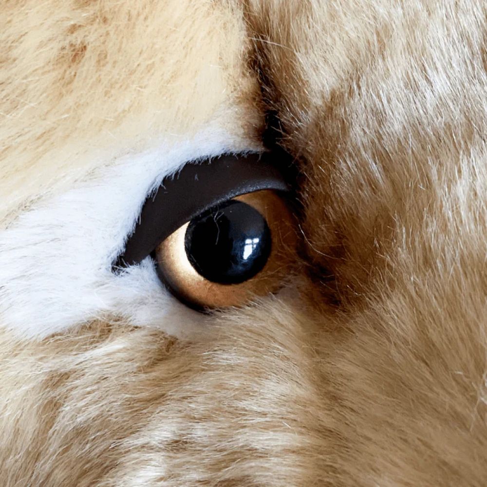 Je suis le roi de la savane, le lion en peluche Melchior ! Ne vous laissez pas impressionner par mon apparence majestueuse, je sais aussi me montrer câlin et affectueux. Afin de me donner ce port royal, j’ai été confectionné avec soin par mes couturières, qui n’ont négligé aucun détail, qu’il s’agisse de mes yeux couleur bronze rehaussés de belles paupières en cuir, de ma douce crinière plus vraie que nature, ou encore de mon pelage soyeux réalisé grâce à la fusion de trois tissus coupés à la main.