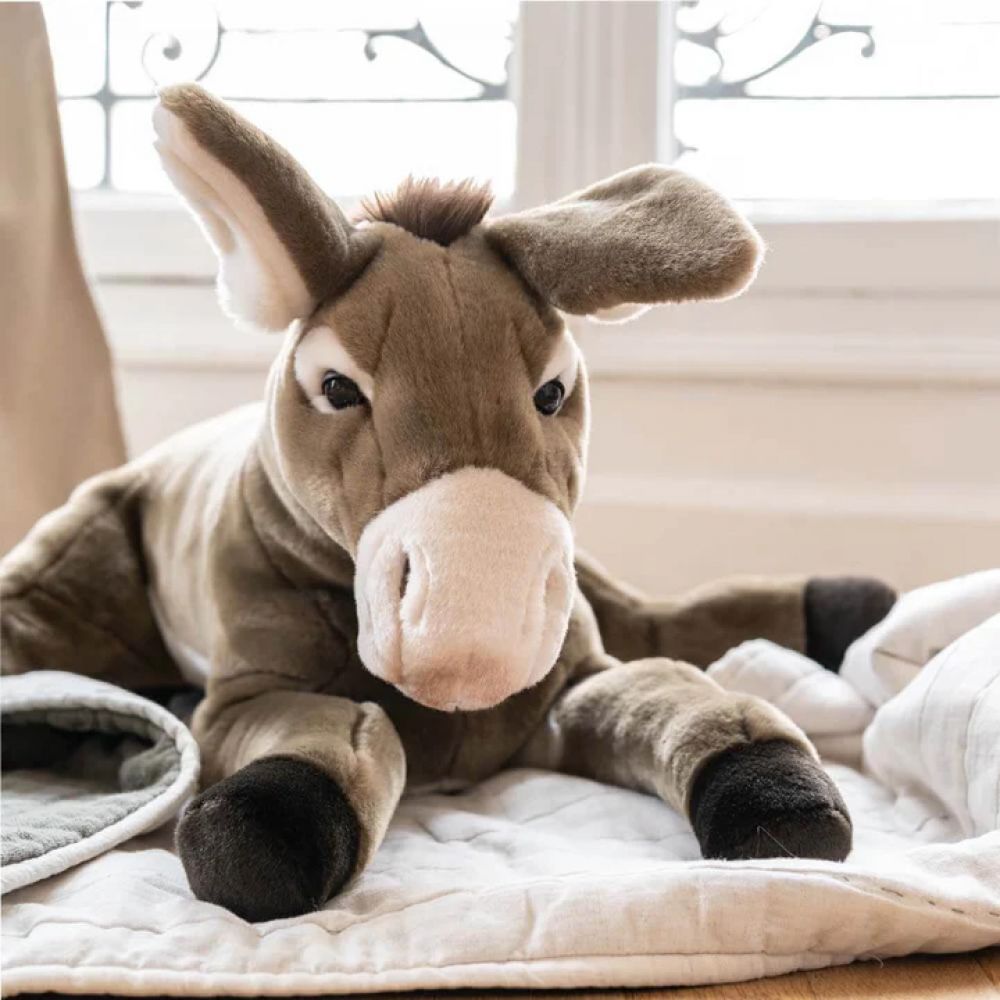 Je suis l’âne en peluche Gaston, ton bourricot préféré ! J’ai été réalisé à la main et avec amour par mes couturières, et avec pour seul but de pouvoir réconforter les tous petits. Pour me rendre irrésistible, aucun détail n’a été négligé : une bouche soigneusement dessinée, des narines plus vraies que nature, et un poil doux et soyeux réalisé à partir de l’assemblage de cinq tissus coupés à la main. Ces soins attentionnés font de moi un âne aussi réaliste que câlin, et n’ayant rien à envier à mes autres compagnons de la campagne.