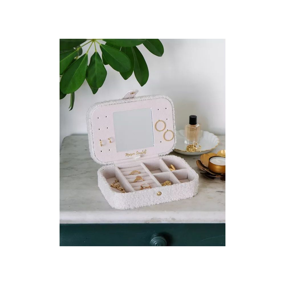 MAISON SCARLETT - BOITE A BIJOUX DE VOYAGE BRIGITTE EN MOUMOUTE BLANC