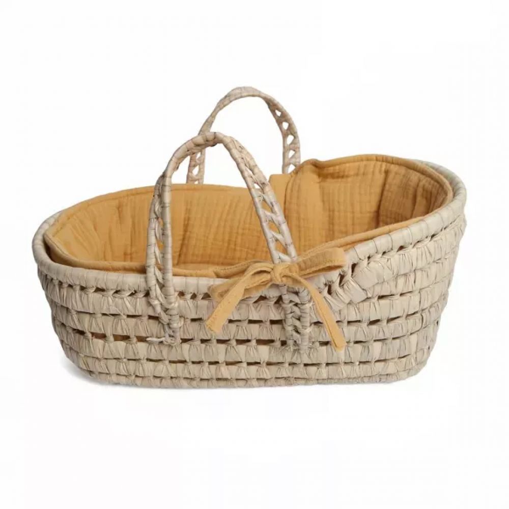 La nacelle en osier rose BOBBLE Wookids est un nid de charme pour la poupée de votre enfant ! Cette petite nacelle en matière naturelle, garnie de gaze de coton bio rose, est très pratique pour transporter les poupées de votre enfant. Il peut également servir de lit ou de petit panier à l'occasion. Le tissu est amovible et peut être facilement lavé. INFORMATIONS TECHNIQUES : Âge recommandé : à partir de 3 ans Matières : rotin Dimensions : Hauteur 15 cm x Longueur 35 x Largeur 23 Couleur : moutarde Fabriqué avec des textiles certifiés Oeko Tex, 100% coton biologique Textile : lavable en machine à 30°C Fabriqué à la main Conçu et fabriqué en Espagne