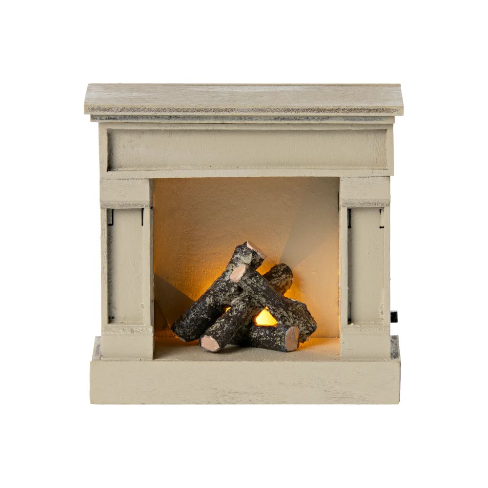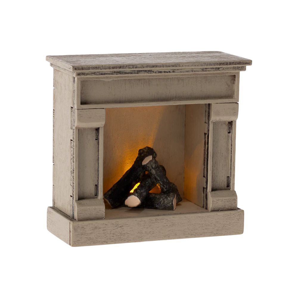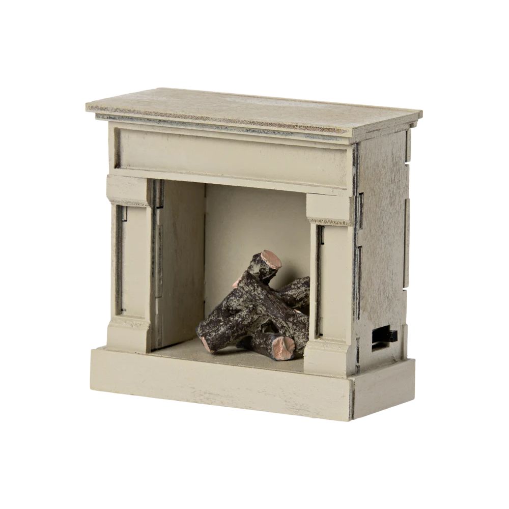 Utilisez cette cheminée en bois pour réchauffer votre maison miniature. Elle a une allure authentique et un joli rendu vintage. Souvenez-vous de l'étteindre lorsque vos amis vont au lit. La batterie peut être changée par un adulte.rnTaille: MOUSE FURNITURErnHauteur: 8.5 cmrnLargeur: 8.5 cmrnÂge: +3 YEARSrnLavage: Lavage superficielrnMatière: Bois / Métal / Polyrésine