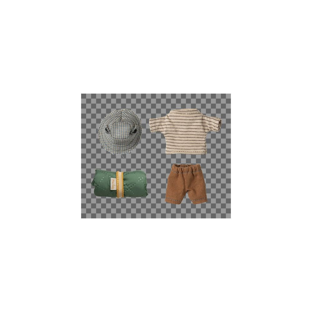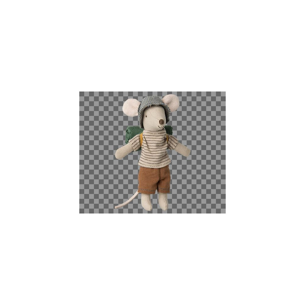 Grand frère souris, aux mains aimantées, est bien équipé pour une randonnée en pleine nature. Habillé pour des jours de marche, il apporte son sac de couchage pour les nuits à la belle étoile. Ajoutez d'autres accessoires de la collection randonnée.