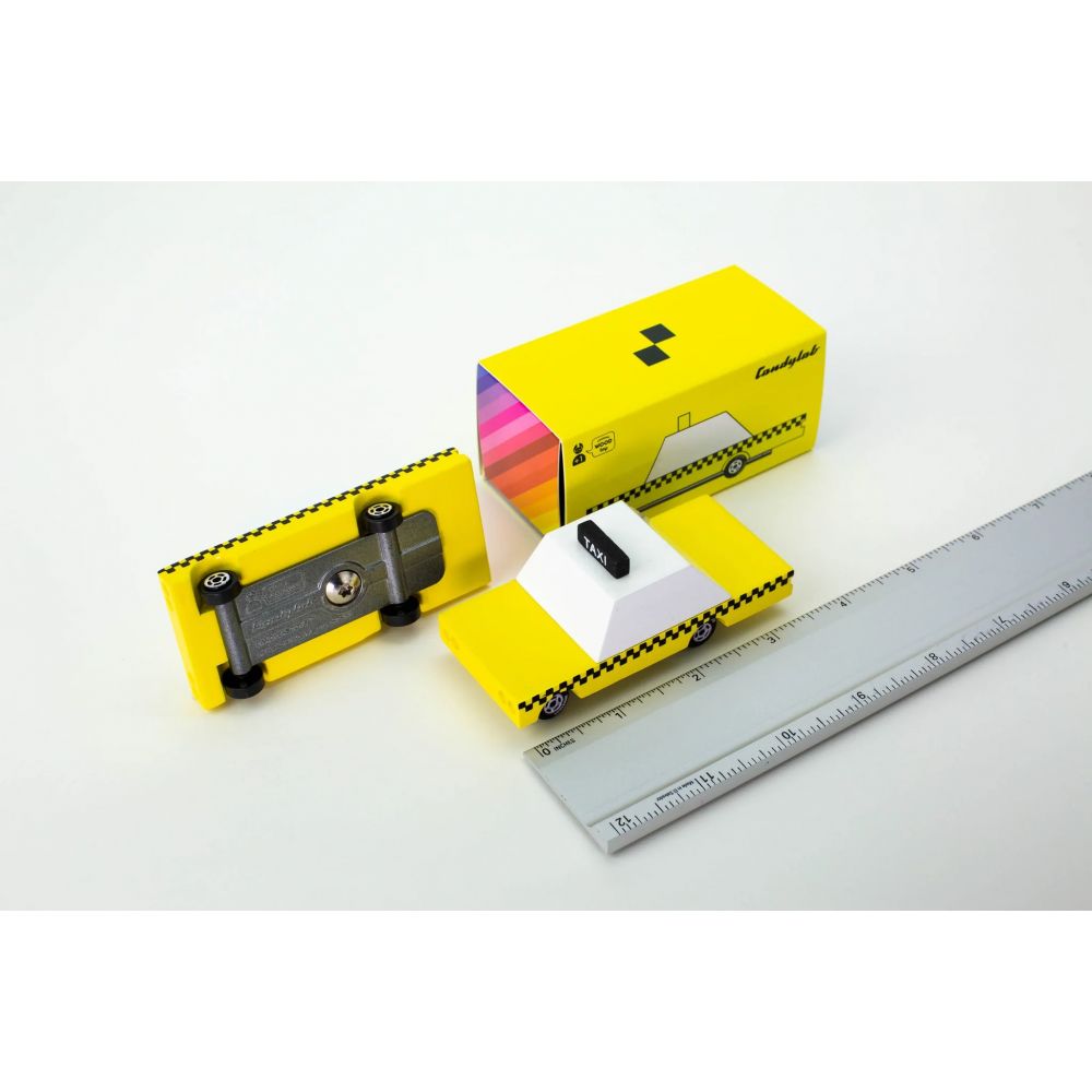 Ce taxi en bois d'une dizaine de centimètres de longueur incarne l'époque où il fallait héler un taxi et jouer des coudes avec un étranger pour se déplacer à New York.